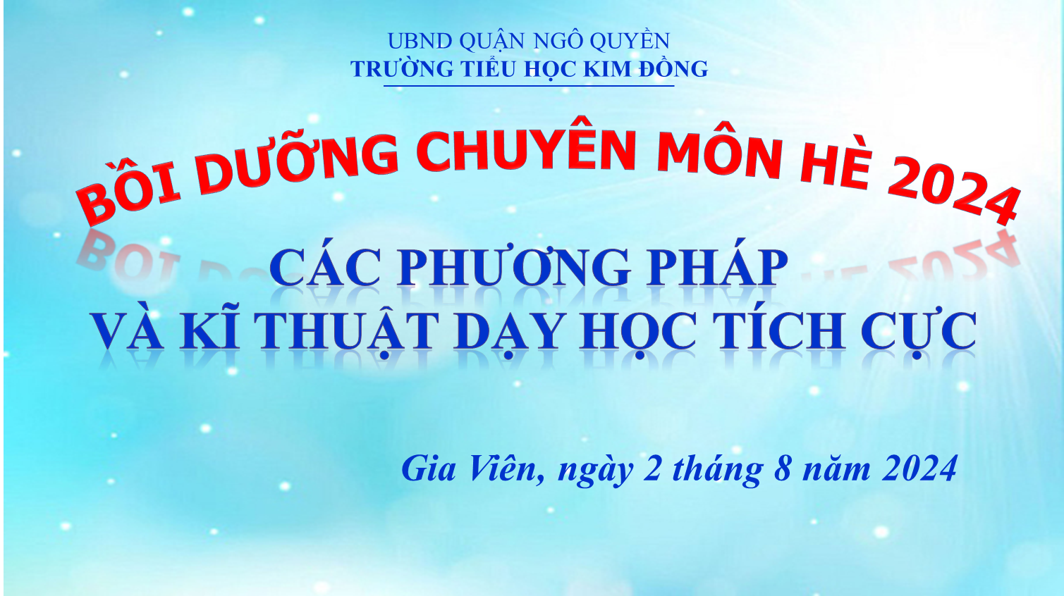 Ngày 02/8/2024, trường Tiểu học Kim Đồng đã tổ chức lớp tập huấn với chủ đề “Mở đầu năm học mới đầy năng lượng!” cho giáo viên nhà trường và rất nhiều thầy cô giáo đến từ các đơn vị khác cùng tham dự. Với chuyên đề do cô giáo Song An – Phó Hiệu trưởng trường Tiểu học Trưng Vương - "Người thầy truyền cảm hứng: dạy học bằng yêu thương" trình bày: Các phương pháp và hình thức dạy học tích cực phát triển phẩm chất và năng lực cho học sinh dành cho giáo viên Tiểu học.