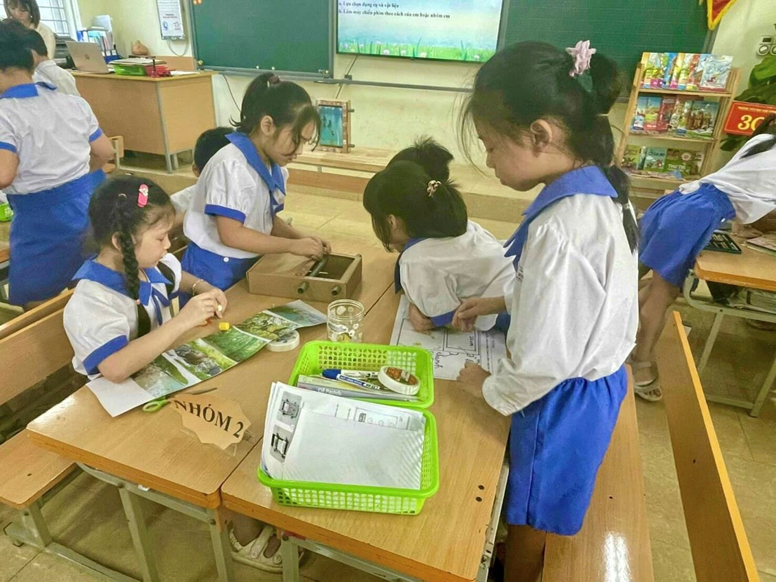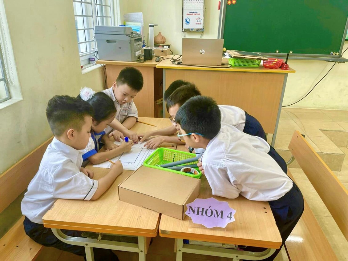 Tiết học thực sự trao cho các em cơ hội vận dụng nhiều kĩ năng quan trọng như kĩ năng làm việc nhóm, kĩ năng nhận dạng và sắp xếp hình, kĩ năng quan sát và đặc biệt là kĩ năng tự học, tự nghiên cứu,… để khám phá nhiều kiến thức cần thiết cho mục tiêu làm sản phẩm STEM máy chiếu phim cùng với cả nhóm của mình.