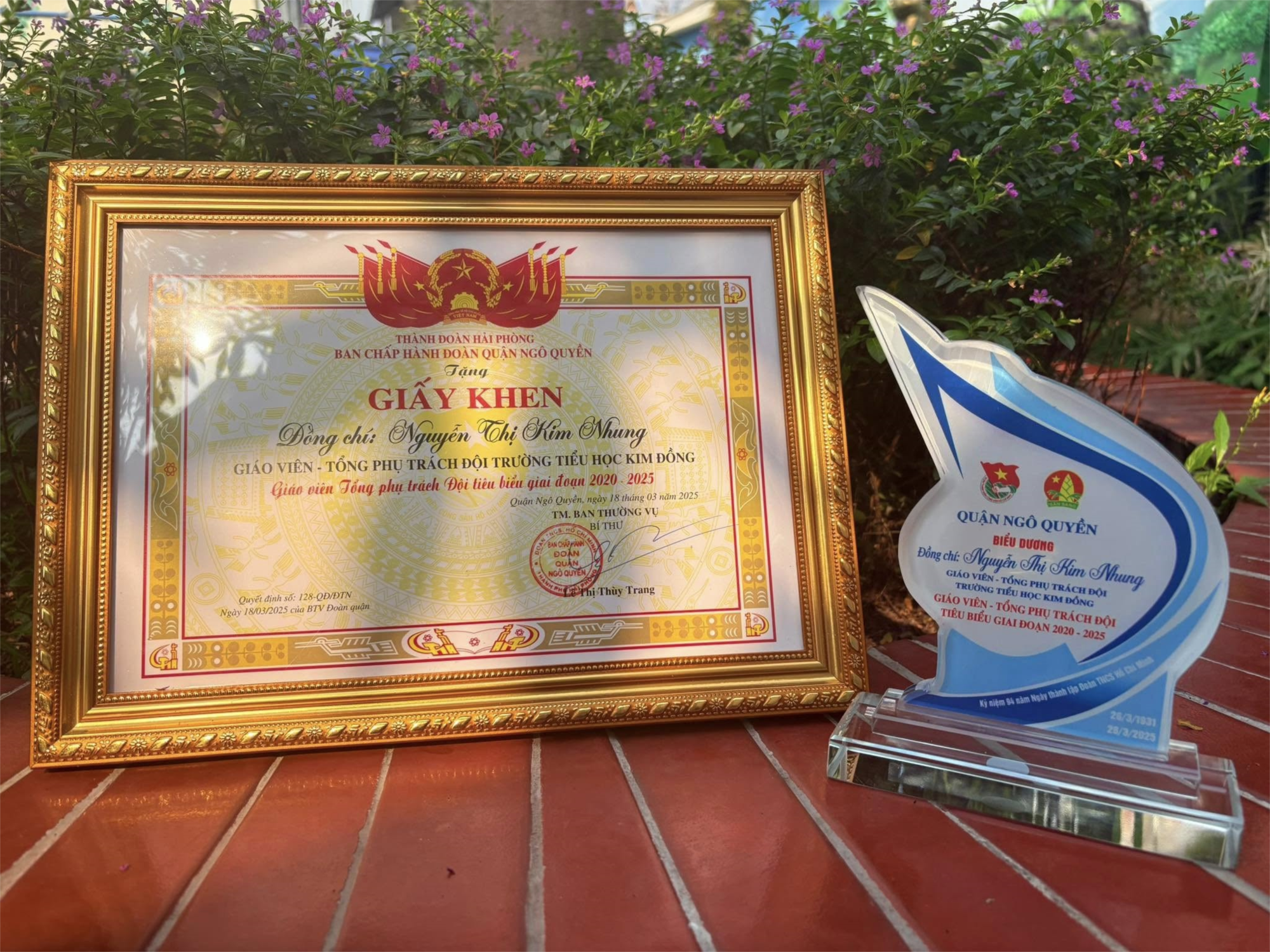 Tại chương trình, rất vinh dự cho nhà trường có cô giáo Nguyễn Thị Kim Nhung - Giáo viên Tổng phụ trách Đội nhà trường đã được nhận Giấy khen và biểu trưng của BCH Đoàn quận Ngô Quyền vì đã có thành tích tiêu biểu giai đoạn 2020 - 2025.