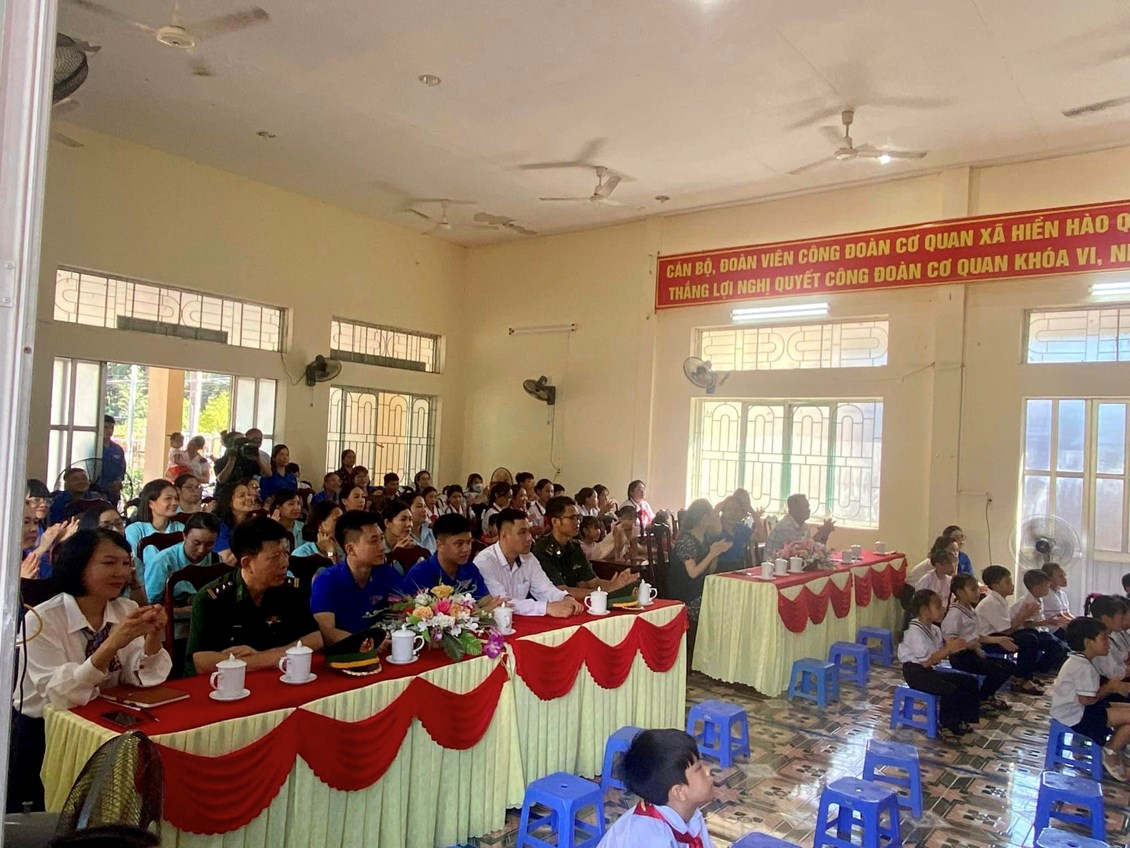 Tại chương trình, đoàn tình nguyện đã trao tặng cho nhà trường loa kéo tay, học bổng, vở viết, tủ thuốc...và các phần quà bánh kẹo cho các em học sinh.
