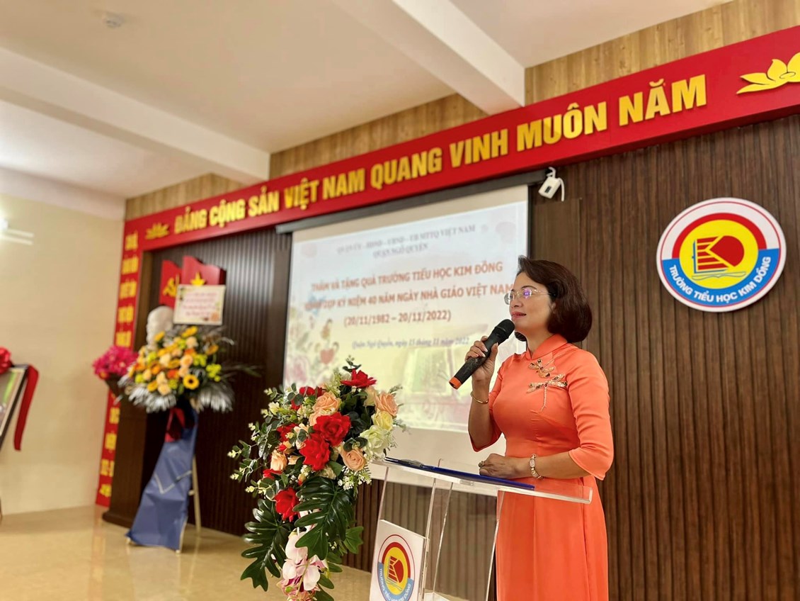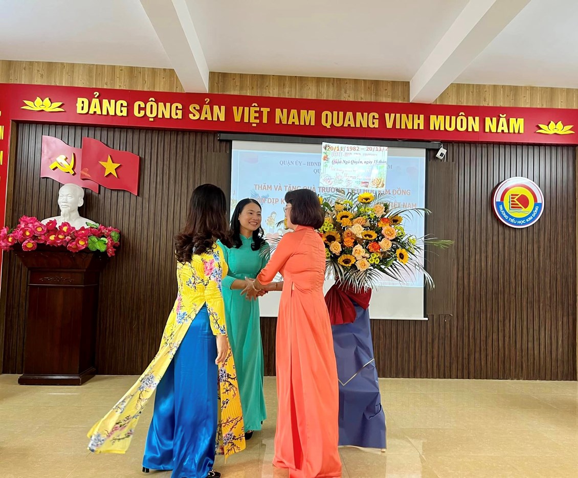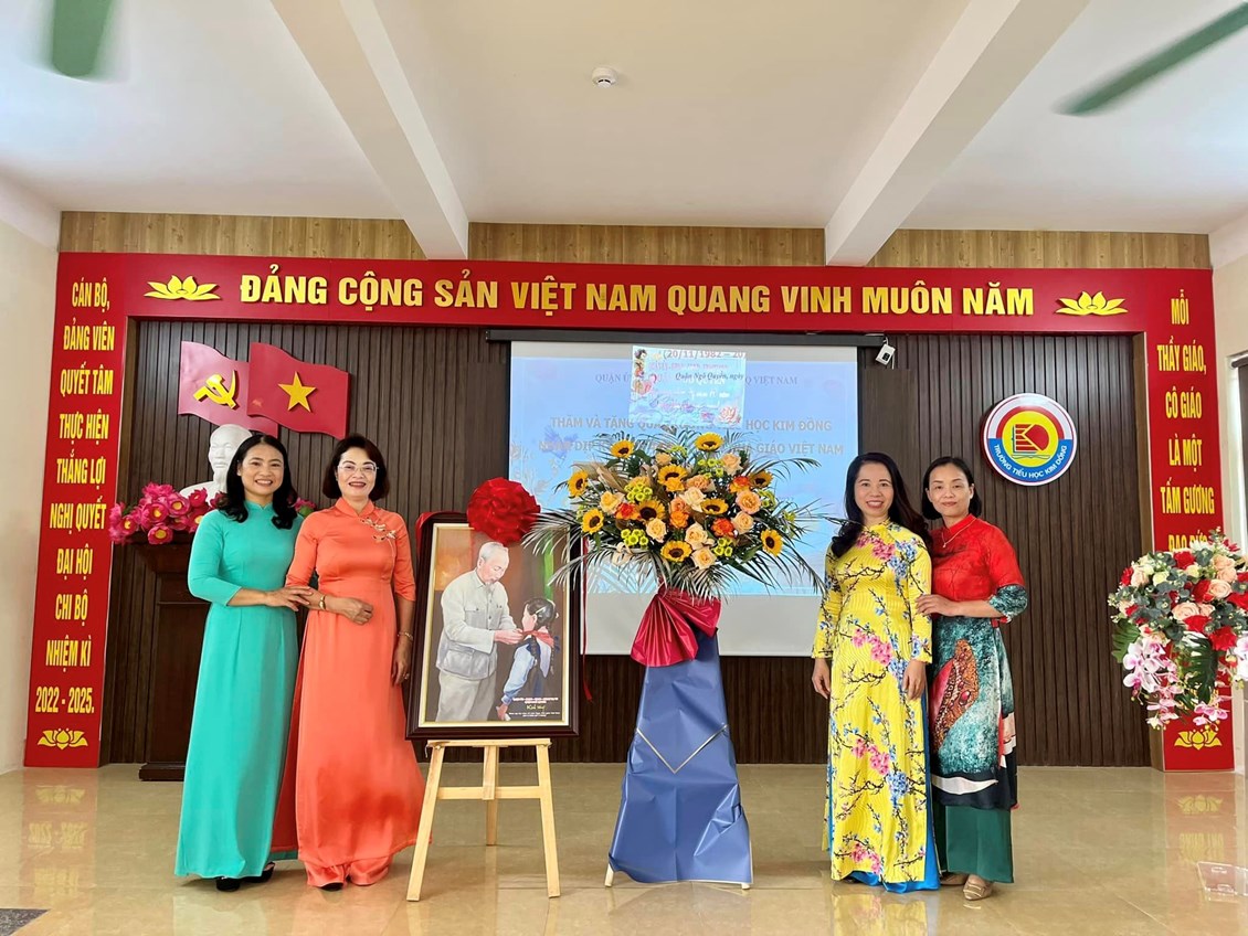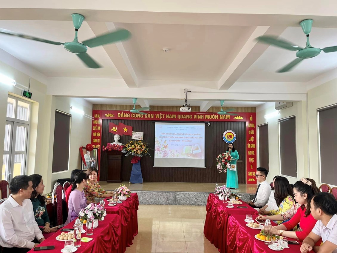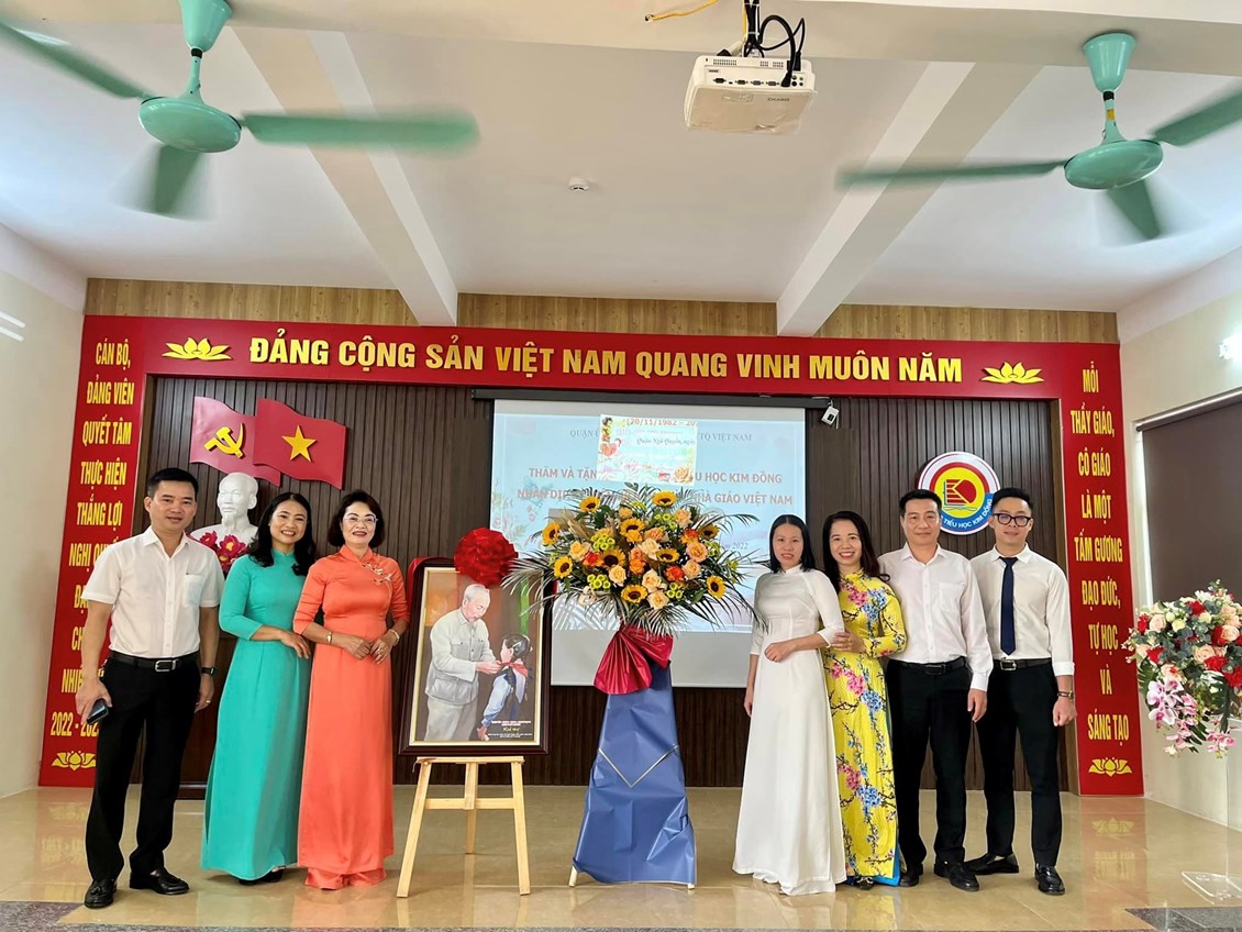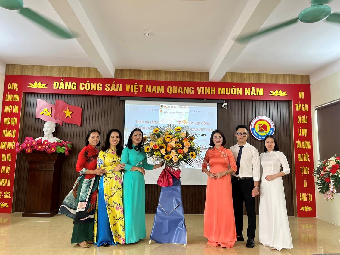 Thực hiện Kế hoạch số 222/KH-UBND ngày 18/10/2022 của Uỷ ban nhân dân quận về việc Tổ chức các hoạt động kỷ niệm 40 năm Ngày Nhà giáo Việt Nam (20/11/1982-20/11/2022), sáng ngày 15/11/2022 trường Tiểu học Kim Đồng vinh dự được đón nhận sự quan tâm, động viên của Đoàn công tác số 7 do Bà Đinh Thị Lương - Ủy viên Ban thường vụ, Chủ tịch UBMTTQ Việt Nam quận - Trưởng đoàn đến chúc mừng, tặng hoa và quà nhà trường.