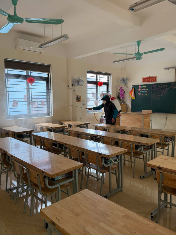 Từng góc sân, lớp học, hành lang được dọn dẹp sạch sẽ; từng khu vực được xử lý kỹ lưỡng. Tất cả thể hiện tinh thần chủ động, trách nhiệm và sự tận tâm của tập thể nhà trường trong việc chăm lo, bảo vệ sức khỏe cho học sinh.
