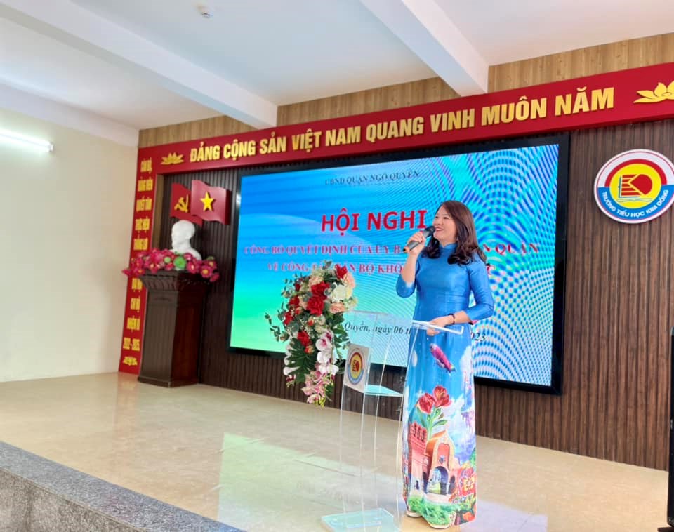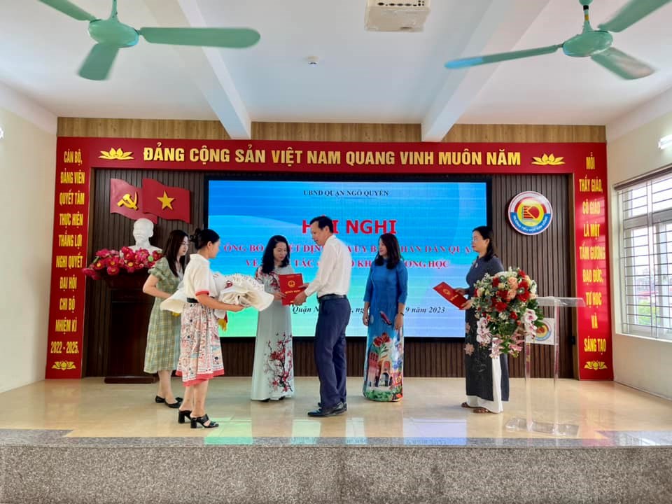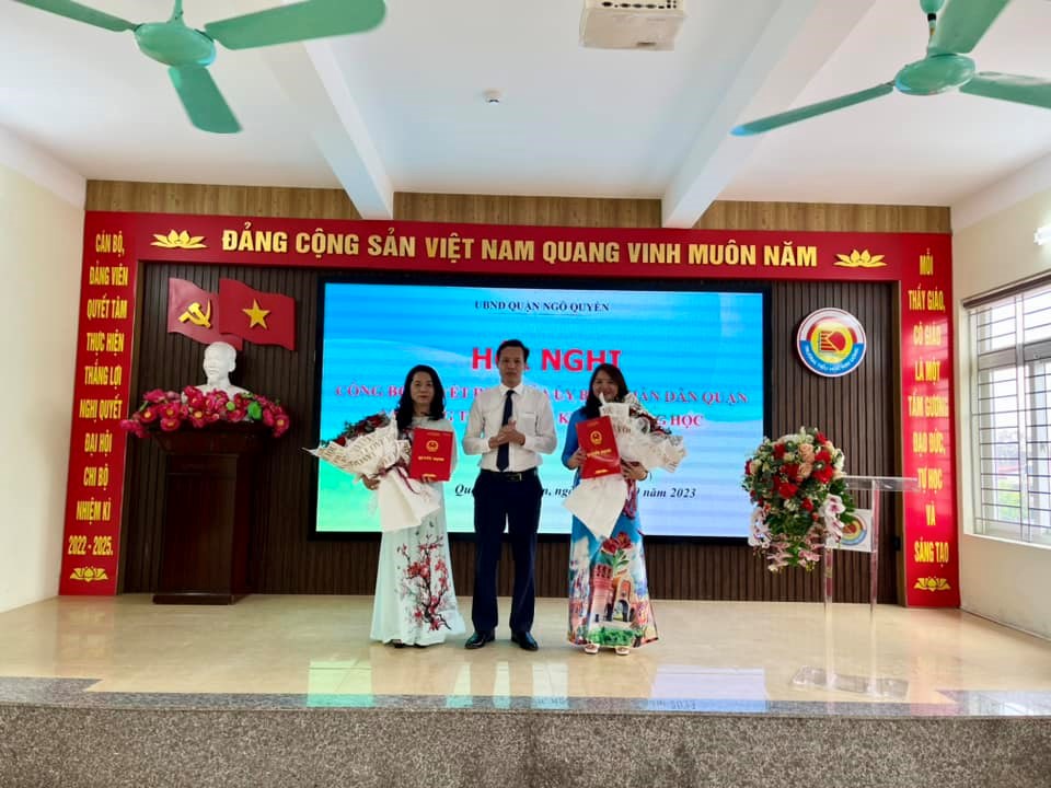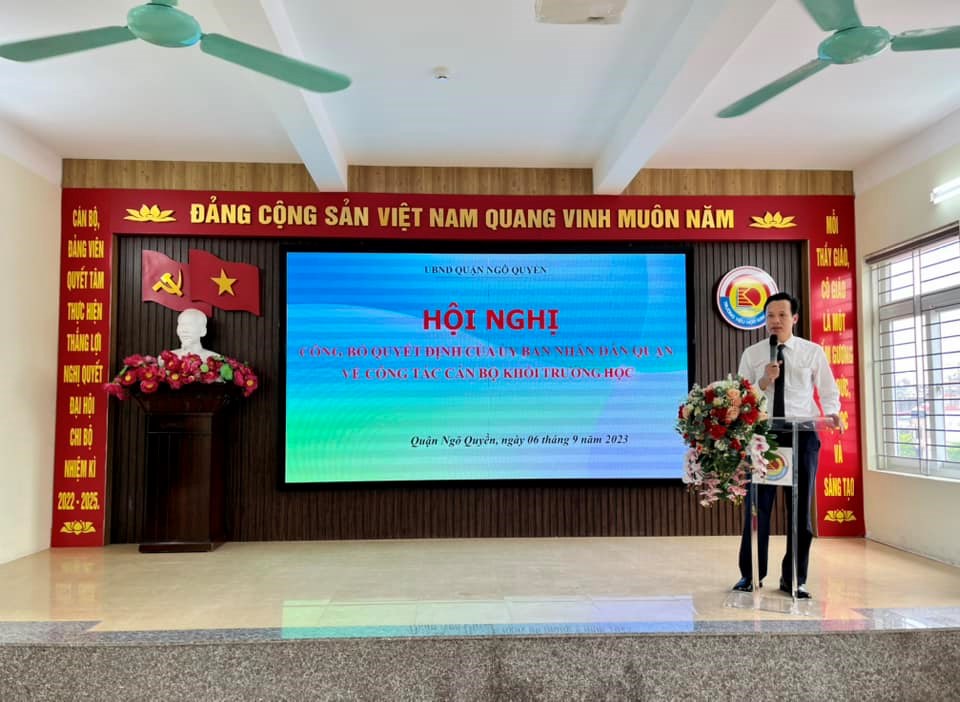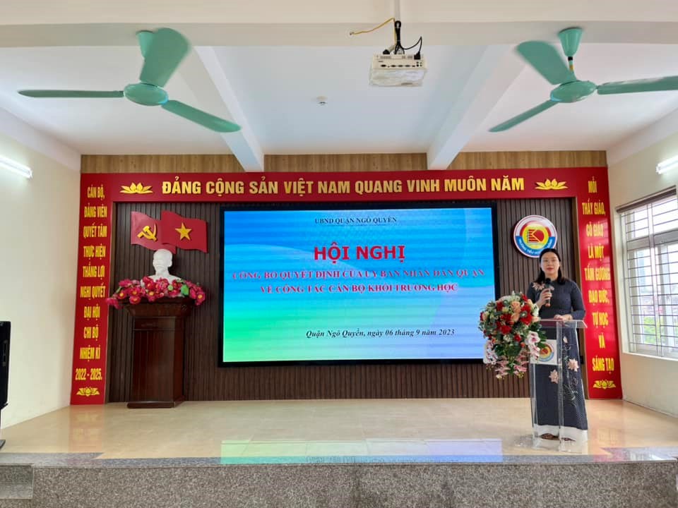 Thực hiện sự điều động và bổ nhiệm viên chức quản lý đơn vị sự nghiệp giáo dục công lập, hôm nay, ngày 06/9 tại trường Tiểu học Kim Đồng - UBND quận Ngô Quyền công bố quyết định: