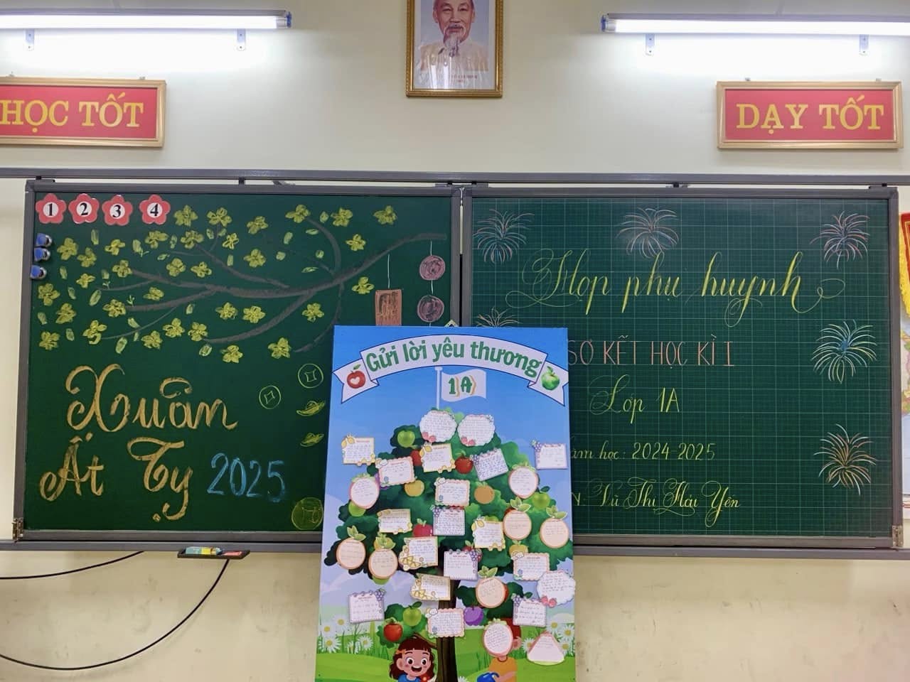 Ở mỗi lớp có hình thức tổ chức cuộc họp khác nhau. Lớp thì tại mỗi chỗ ngồi được cô giáo rất tinh tế và chu đáo khi gắn lên đó “gửi gắm trái tim yêu thương” thay lời cảm ơn của cô giáo chủ nhiệm tới các bậc phụ huynh đã tới dự buổi họp Sơ kết học kì I hôm nay. Có lớp phụ huynh được lắng nghe những tiết mục văn nghệ, những câu chuyện mà các con yêu thích, được nghe sự chia sẻ của các con về ấn tượng, cảm xúc, những bức ảnh, những video.... đó là những thước phim quý giá những kỉ niệm, hoạt động hành trình mà các con đã đồng hành cùng nhau.