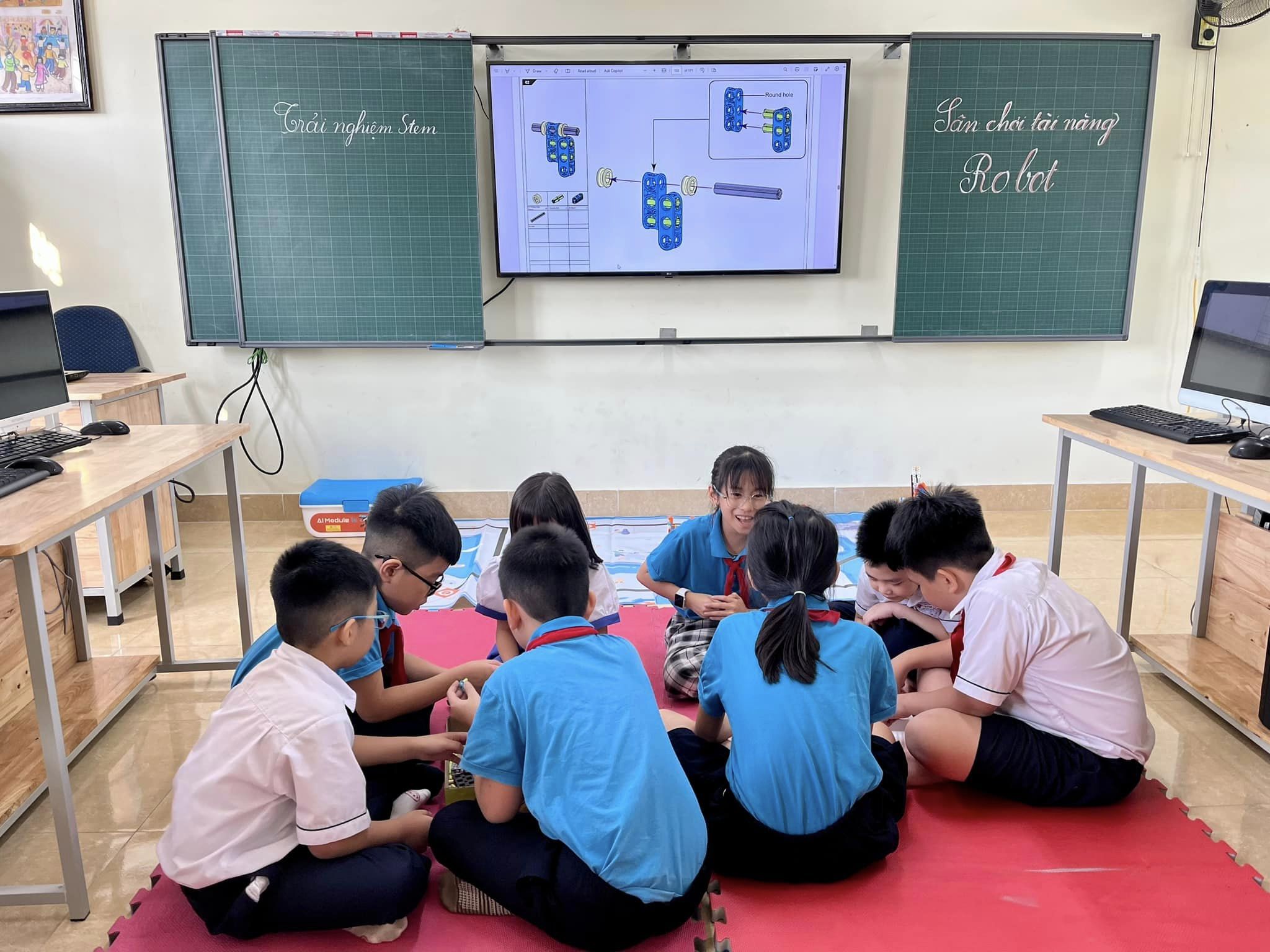 Các em học sinh tham gia trong Câu lạc bộ này, ngoài việc bổ sung kiến thức cần thiết về khoa học, toán, công nghệ … còn có cơ hội tham gia vào các hoạt động trải nghiệm thực tế như lắp ráp robot, lập trình robot và giải quyết các bài toán về robot thông qua các ngôn ngữ lập trình Scratch, Python … để cho robot hoạt động, nạp “ bộ não” robot và đưa nó chạy thử trên sa bàn. Các bài tập được thiết kế đã khuyến khích sự sáng tạo, cũng như đề cao tính thực dụng và tư duy logic. Các em học sinh có cơ hội trau dồi kỹ năng, kiến thức của mình thông qua các hoạt động thực tế và các trò chơi thú vị do chính các em tạo nên. Khi được làm chủ, được tự do sáng tạo, niềm say mê học tập của các em sẽ được kích thích và duy trì lâu dài.