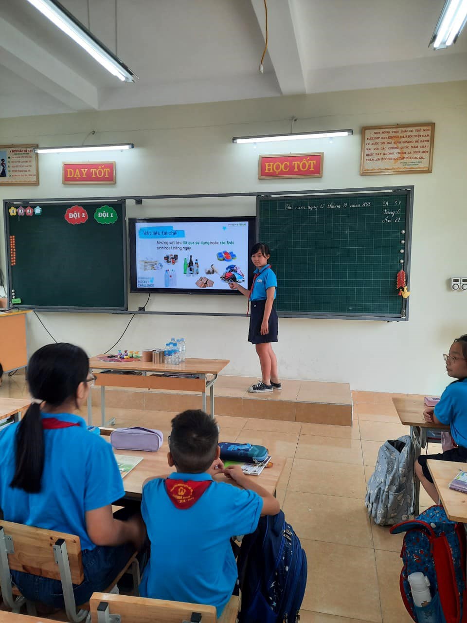 Hoạt động này nhằm giáo dục cho các em học sinh cách tiết kiệm và tái sử dụng những vật liệu không dùng đến. Các loại rác tưởng chừng như không ai sử dụng như: vỏ hộp sữa, túi nilon, chai nhựa, đĩa CD, giấy báo cũ, giấy bọc quà…Qua đôi bàn tay khéo léo, trí tưởng tượng phong phú, các thầy cô giáo cùng học sinh đã tạo nên những sản phẩm đẹp mắt và đưa vào sử dụng.