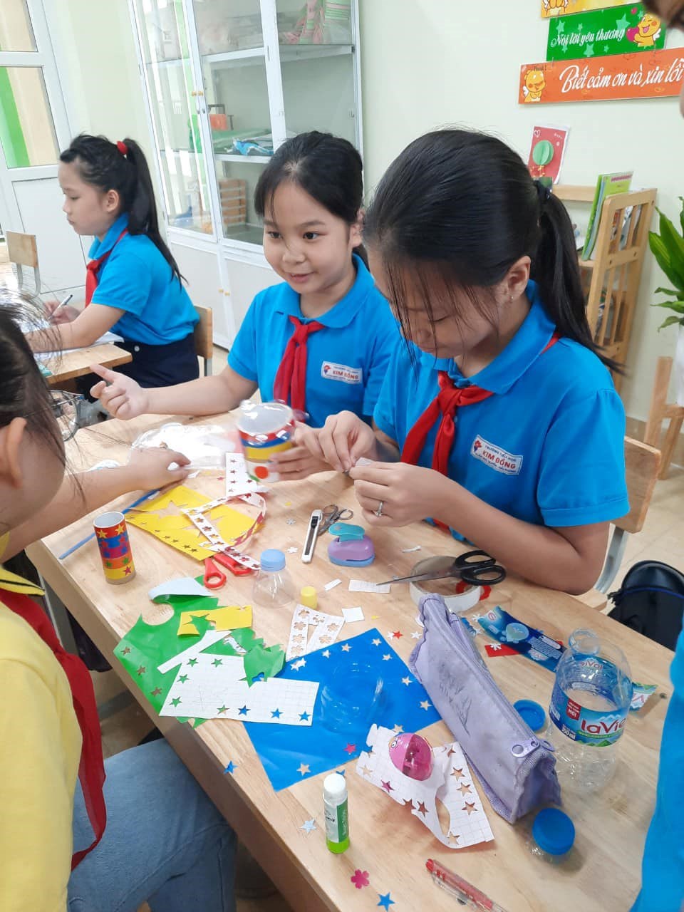 cảnh, lọ cắm bút, con vật … từ đây giúp cho các em học sinh biết một số cách tạo sản phẩm từ vật dụng tái chế để hạn chế chất thải vào môi trường.