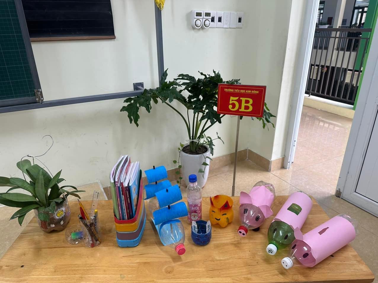 Với mục đích tuyên truyền cho các em học sinh về phong trào “Chống rác thải nhựa, sử dụng các sản phẩm thân thiện với môi trường vì một hành tinh xanh” góp phần giải quyết vấn đề ô nhiễm môi trường. Trong năm học này, Liên đội trường Tiểu học Kim Đồng đã triển khai tới 100% các lớp làm các sản phẩm trưng bày như: bình hoa, chậu cảnh, lọ cắm bút, con vật … từ đây giúp cho các em học sinh biết một số cách tạo sản phẩm từ vật dụng tái chế để hạn chế chất thải vào môi trường.