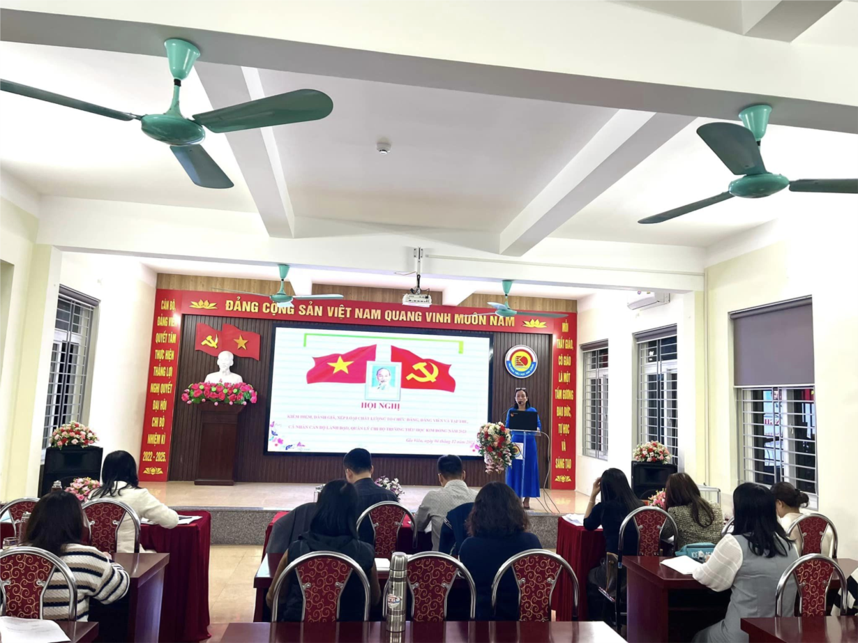 Chiều ngày 04/12/2023, chi bộ trường Tiểu học Kim Đồng đã tiến hành Hội nghị kiểm điểm, đánh giá, xếp loại chi bộ, đảng viên tập thể, cá nhân cán bộ lãnh đạo, quản lý năm 2023.