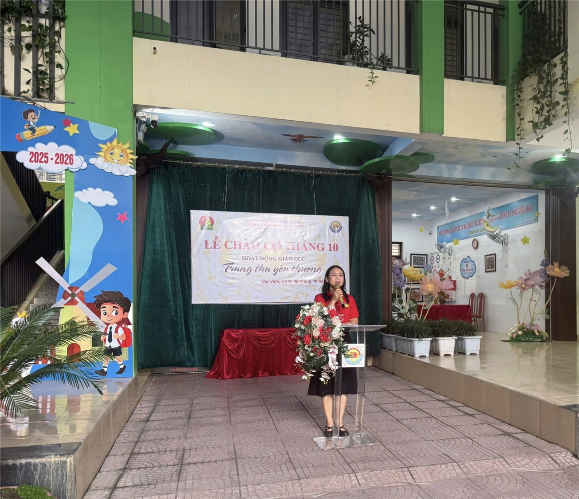 Sáng ngày 06/10/2025, Liên đội Trường Tiểu học Kim Đồng long trọng tổ chức Lễ chào cờ tháng 10 với chủ đề: “Chăm ngoan – Học giỏi, làm nhiều việc tốt dâng tặng mẹ, tặng cô nhân kỉ niệm Ngày Phụ nữ Việt Nam 20/10”.