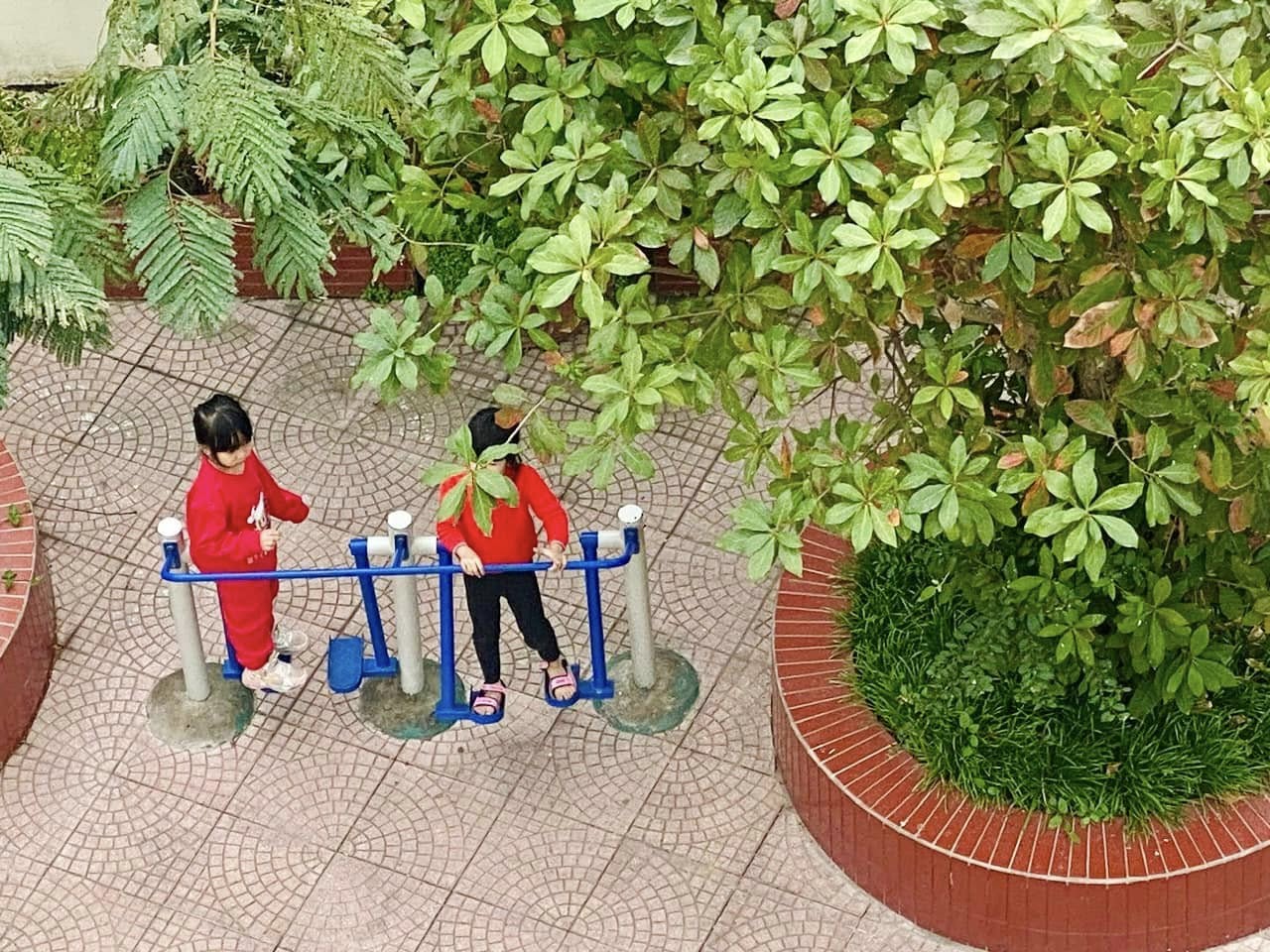 niềm vui của trẻ thơ. Tiếng cười nói rộn rã của các em hòa quyện với tiếng chim hót tạo nên một bản nhạc vui tươi.