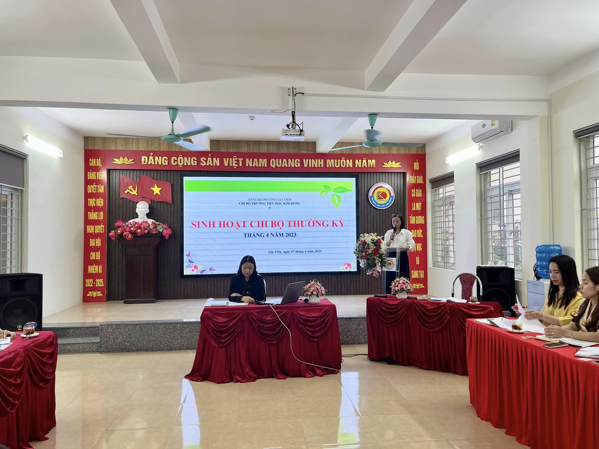 Sinh hoạt chi bộ là một trong những hoạt động chủ yếu của chi bộ, nhằm tạo sự thống nhất về nhận thức để thống nhất hành động, đưa nghị quyết vào cuộc sống. Chi bộ trường Tiểu học Kim Đồng có 17 đảng viên, là chi bộ luôn được cấp trên đánh giá là một trong các đơn vị cơ sở Đảng vững mạnh, thực hiện tốt mọi nhiệm vụ công tác chính trị của Đảng.