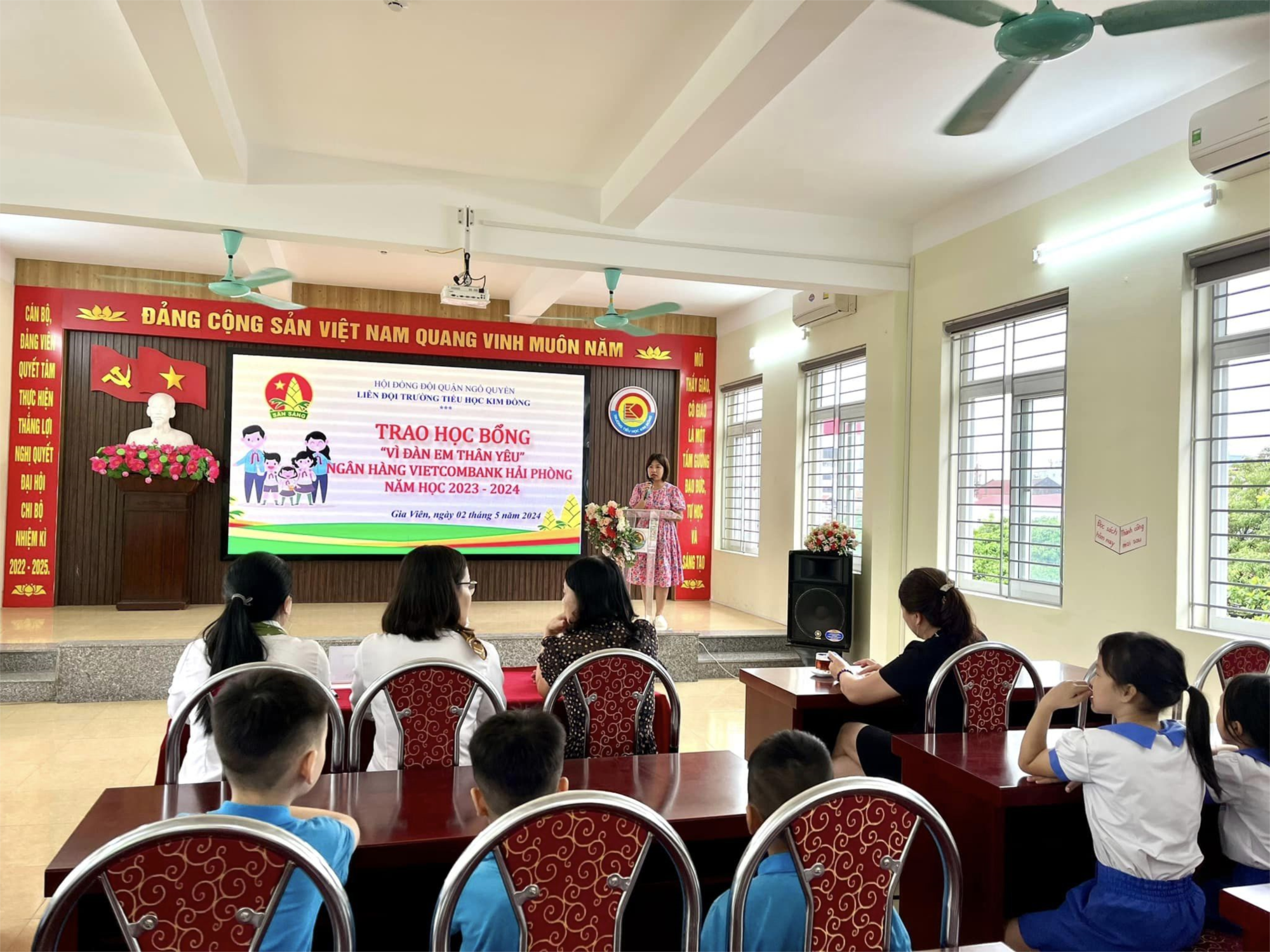 Chiều ngày 02/5/2024, đại diện lãnh đạo Ngân hàng Vietcombank phối hợp với Ban giám hiệu trường Tiểu học Kim Đồng tổ chức Chương trình trao tặng học bổng “ Vì đàn em thân yêu” năm 2024 cho 10 học sinh có hoàn cảnh khó khăn của trường, mỗi suất học bổng trị giá 500.000 đồng.