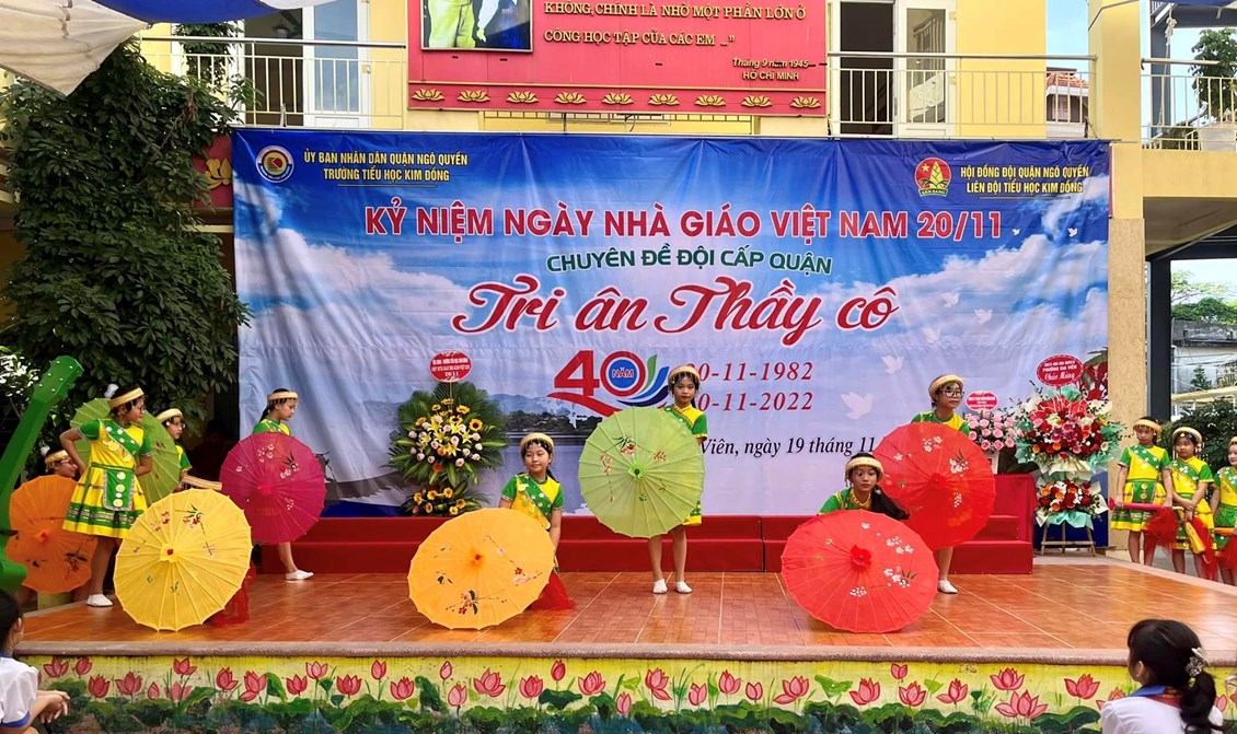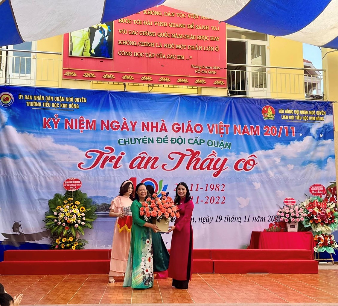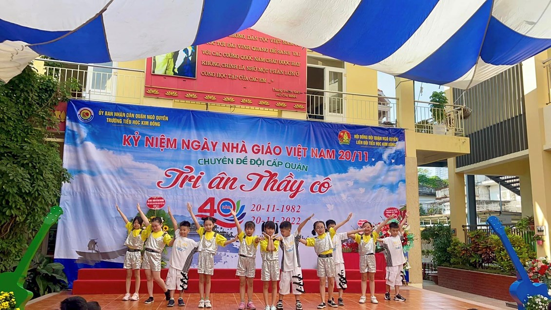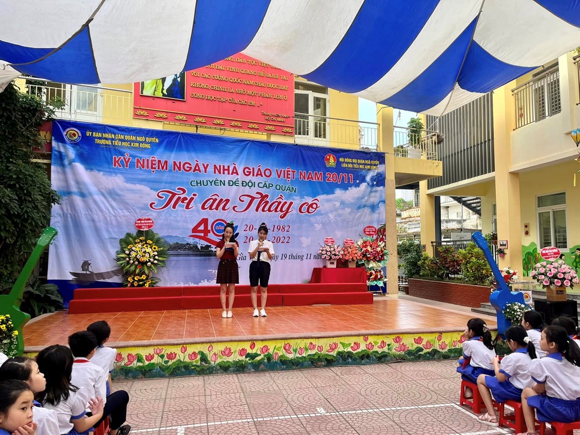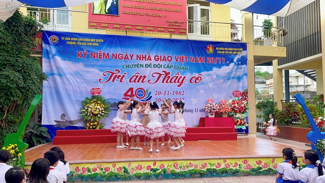 Hoà chung với không khí tưng bừng trong cả nước hướng về kỷ niệm 40 năm ngày nhà giáo Việt Nam 20/11, 67 năm truyền thống ngành Giáo dục Hải Phòng. Với truyền thống "Tôn sư, trọng đạo "của dân tộc, thầy và trò trường Tiểu học Kim Đồng cũng vui mừng chào đón ngày hội lớn - ngày hội truyền thống của ngành giáo dục. Sáng ngày 19/11/2022, trường Tiểu học Kim Đồng long trọng tổ chức lễ kỉ niệm 40 năm ngày Nhà giáo Việt Nam 20/11; chuyên đề Đội cấp Quận “Tri ân thầy cô”. Tham dự buổi lễ có Ông Trịnh Quang Minh - Cán bộ chuyên trách Đoàn quận Ngô Quyền, Bà Đặng Thị Ngọc Anh- Phó chủ tịch UBND phường Gia Viên; Bà Ngô Thị Thu Hương - Bí thư đoàn phường Gia Viên; các thầy giáo, cô giáo trong Hội cựu giáo chức; các vị đại diện Hội Cha mẹ Học sinh các lớp cùng toàn thể cán bộ - giáo viên - nhân viên nhà trường.