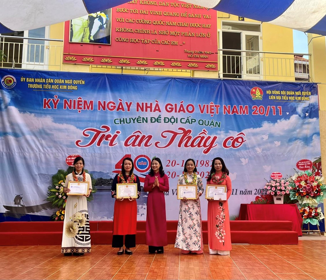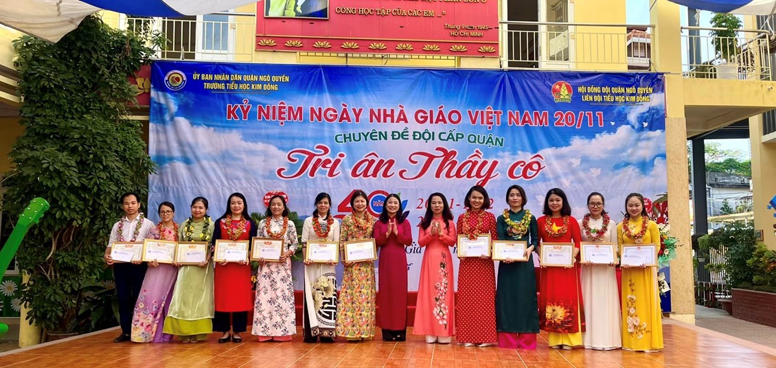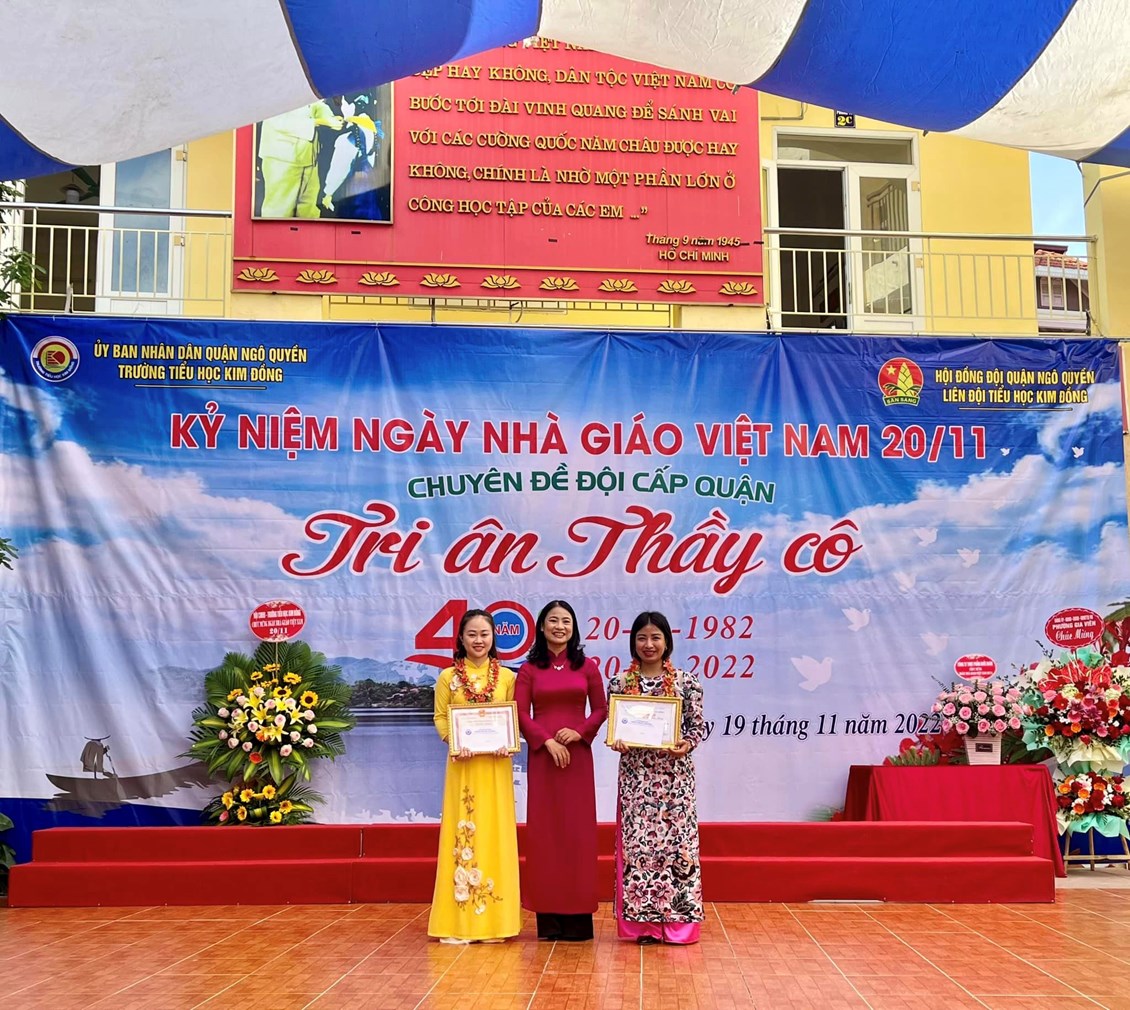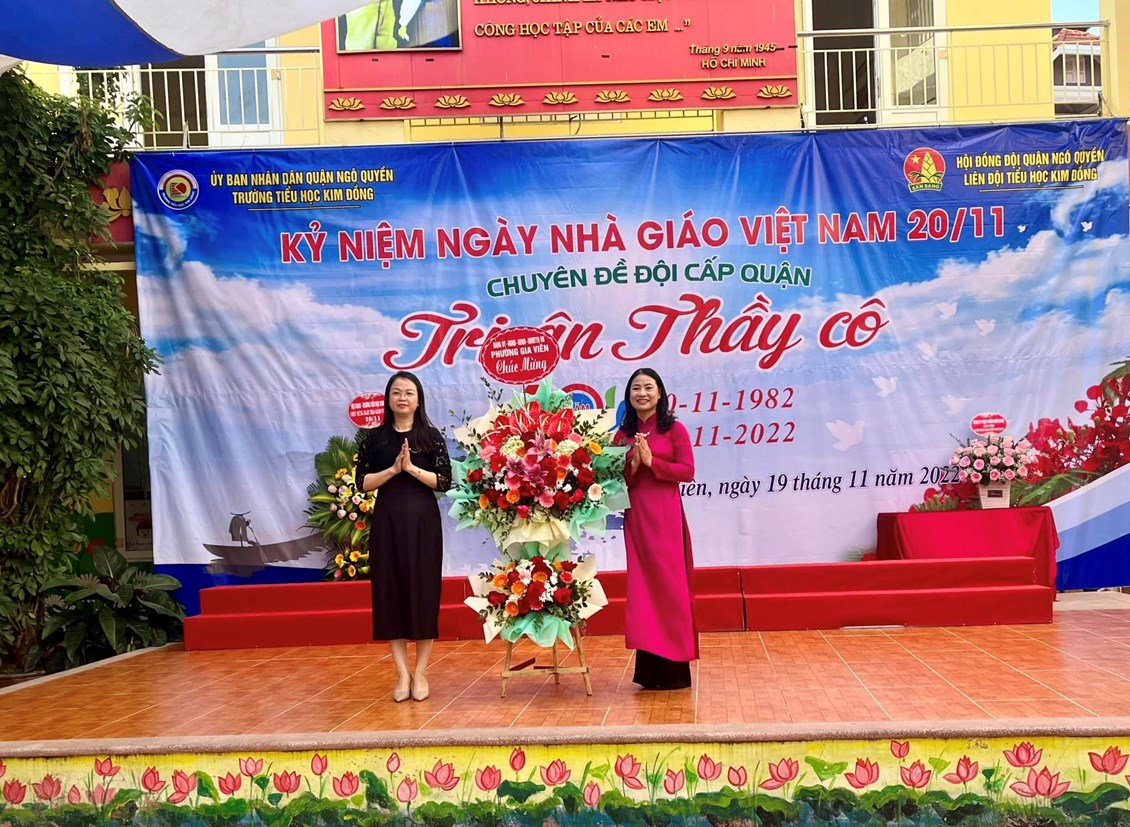 Hoà chung với không khí tưng bừng trong cả nước hướng về kỷ niệm 40 năm ngày nhà giáo Việt Nam 20/11, 67 năm truyền thống ngành Giáo dục Hải Phòng. Với truyền thống "Tôn sư, trọng đạo "của dân tộc, thầy và trò trường Tiểu học Kim Đồng cũng vui mừng chào đón ngày hội lớn - ngày hội truyền thống của ngành giáo dục. Sáng ngày 19/11/2022, trường Tiểu học Kim Đồng long trọng tổ chức lễ kỉ niệm 40 năm ngày Nhà giáo Việt Nam 20/11; chuyên đề Đội cấp Quận “Tri ân thầy cô”. Tham dự buổi lễ có Ông Trịnh Quang Minh - Cán bộ chuyên trách Đoàn quận Ngô Quyền, Bà Đặng Thị Ngọc Anh- Phó chủ tịch UBND phường Gia Viên; Bà Ngô Thị Thu Hương - Bí thư đoàn phường Gia Viên; các thầy giáo, cô giáo trong Hội cựu giáo chức; các vị đại diện Hội Cha mẹ Học sinh các lớp cùng toàn thể cán bộ - giáo viên - nhân viên nhà trường.
