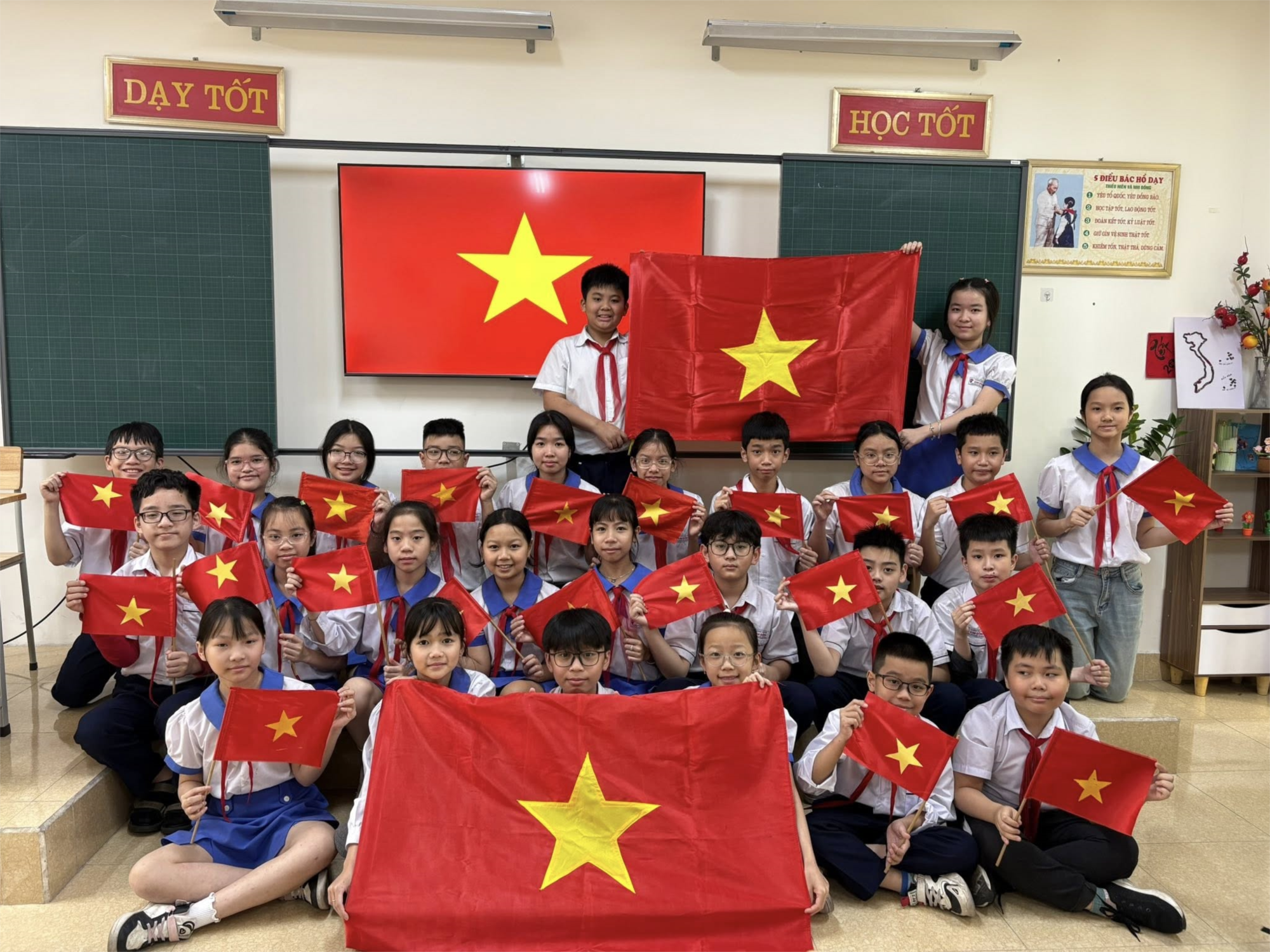 Đây không chỉ là hoạt động trang trí mà còn là một thông điệp giáo dục mạnh mẽ, khơi dậy lòng yêu nước, tinh thần tự hào dân tộc trong mỗi học sinh. Những lá cờ đỏ sao vàng không chỉ là biểu tượng của Tổ quốc, mà còn là hình ảnh gợi nhắc đến bao lớp cha ông đã ngã xuống vì độc lập, tự do.