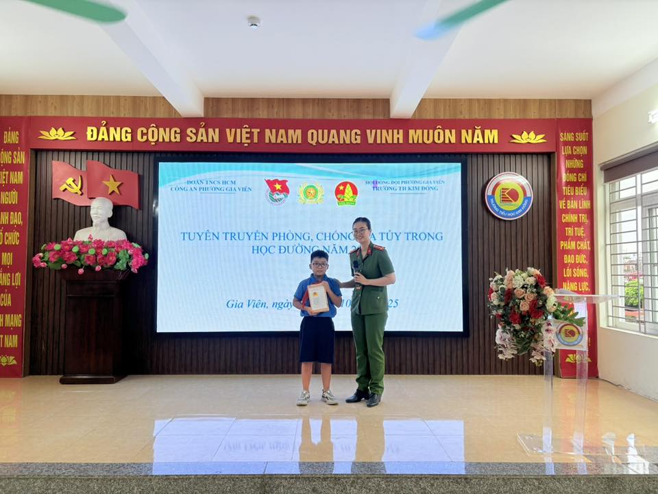 Thực hiện Kế hoạch của Đảng ủy; UBND phường Gia Viên về việc xây dựng “Phường không ma túy” giai đoạn 2025 – 2030, chiều ngày 31/10/2025, Trường Tiểu học Kim Đồng phối hợp với Phòng Cảnh sát điều tra tội phạm về ma túy Công an phường Gia Viên tổ chức buổi tuyên truyền về tác hại của ma túy và công tác phòng, chống ma túy trong học đường.